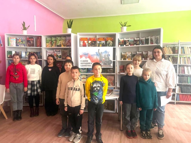 В преддверии праздника в библиотеки-филиале для детей оформлена книжная выставка «Когда мы едины, мы непобедимы», которая познакомила читателей с иллюстрированными энциклопедиями, рассказывающие историю праздника, о подвиге К. Минина и Д. Пожарского. После ознакомления книжной выставкой пользователи посетили историческое ревю «Есть имена, и есть такие даты», посвященное Дню народного единства. В начале мероприятия была озвучена история праздника, о государственной символике России. Вместе с детьми подчеркнули, что для россиян День народного единства- праздник дружбы и объединения, праздник любви и согласия.