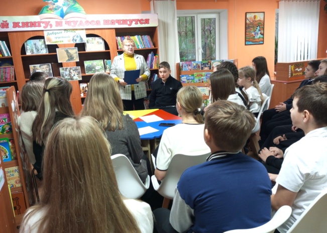 Библиотекари центральной библиотеки для обучающихся 6 класса ГБОУ ЛНР «Брянковская специализированная школа №23» подготовили литературное знакомство «…Чтобы не было неправды и зла на земле». Мероприятие было приурочено к 120-летию со дня рождения писателя Гавриила Николаевича Троепольского − автора, пожалуй, самой трогательной повести о дружбе человека и собаки «Белый Бим Черное ухо». Ребята познакомились с биографией автора, с историей написания повести, судьбой собаки, теряющей любимого хозяина, об отношении людей к «братьям меньшим». Дети узнали, что в 1971 году впервые вышла в свет книга о шотландском сеттере Биме, что она выдержала большое количество переизданий, переведена более чем на 15 языков мира. Обсуждая прочитанные отрывки из произведения, ребята говорили о таких качествах личности как отзывчивость, взаимопонимание, благородство, снисходительность, сострадание, а также о таких пороках, как злость, подлость, зависть, равнодушие. Повесть заканчивается печально, но при этом оставляет после себя светлые и теплые чувства. Какие выводы можно сделать после прочтения? Оставаться человеком в любой ситуации. А определяется человечность в первую очередь в умении сопереживать и сочувствовать тем, кто слабее нас – братьям нашим меньшим. В завершении встречи дети поделились рассказами о своих любимых домашних животных, а также проверили свои знания в викторине о собаках.